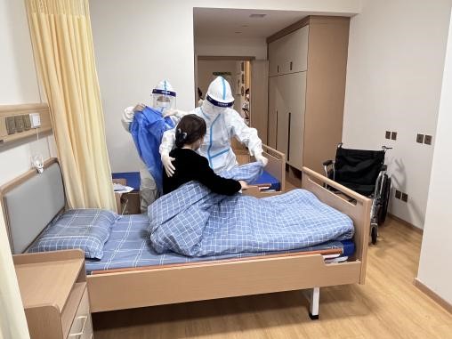 3、隨后,醫(yī)生安撫發(fā)熱長者,并退出長者居室,關(guān)閉入戶門并張貼“隔離區(qū)”標(biāo)識,同時(shí)立刻匯報(bào)于院內(nèi)領(lǐng)導(dǎo);